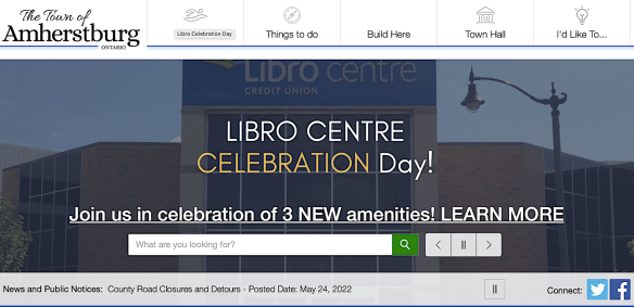 In addition to media articles, the Town of Amherstburg website advertised the LIBRO Celebration Day: “Join us in celebration of 3 NEW AMENITIES!’